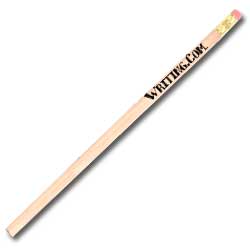 Writing.Com pencils have a rubber eraser with brass ferrule and lead filament enclosed in a natural wood case. "Writing.Com" is printed in large black logo letters on the side. Sold in sets of 10 pencils.